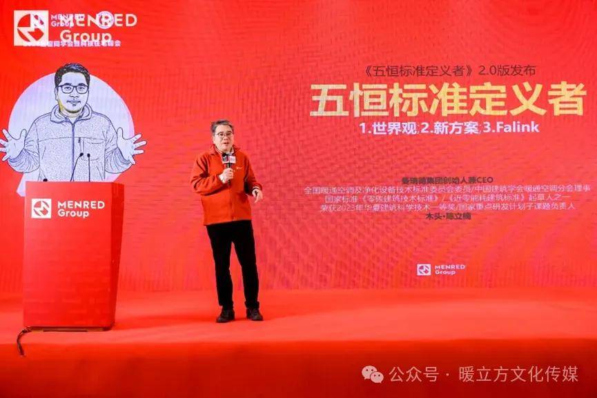 三、内容的引领性:近些年来,关于五恒讨论数量众多,但不少会议有一个显著的特性——广泛探讨,但难以达成共识,形成推动行动的结论。在本次会议上,曼瑞德同样准备了高峰论坛,在各自领域有着深刻认知的代表们广开言论,进行观点的分享。但另一方面,监曼瑞德显然致力于形成结论,由行业中人称“木头哥”的曼瑞德集团创始人、董事局主席兼CEO陈立楠带领的曼瑞德团队,以《揭秘“等温除湿”与“等温加湿”的控制实践——新风环控机的技术演进及发布》、《热泵五恒机与全维度巅峰的Max系统方案》、《MENRED ESS光伏储能绿电系统发布》、《五恒知识博主的自我养成》等重磅发布,组成一幅曼瑞德解决方案的全景,最终在陈总《五恒标准定义者》2.0发布之际,所有信息汇总,形成一个完整、全面的体系,让与会者形成共识,“议而有决”,成为推动行业前行的动力。